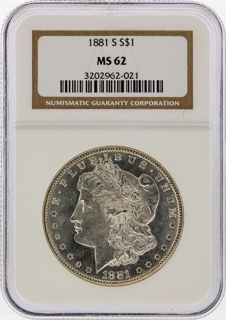 One 1881-S $1 Morgan Silver Dollar NGC Graded MS62. NGC Certified.