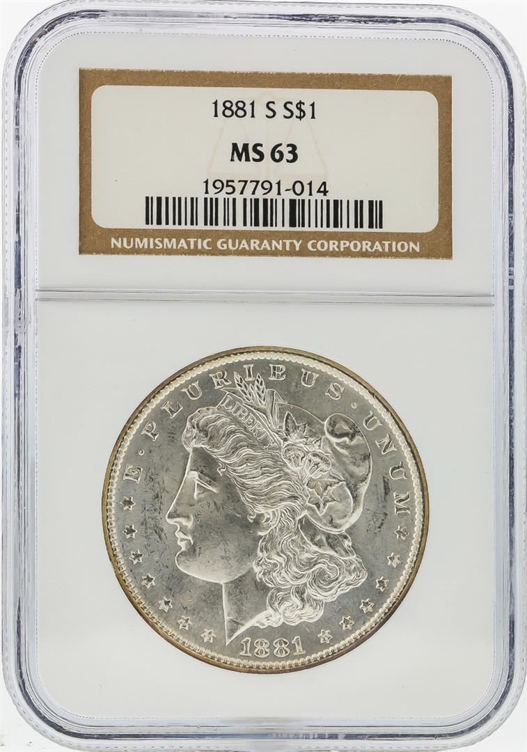 One 1881-S $1 Morgan Silver Dollar NGC Graded MS63. NGC Certified.