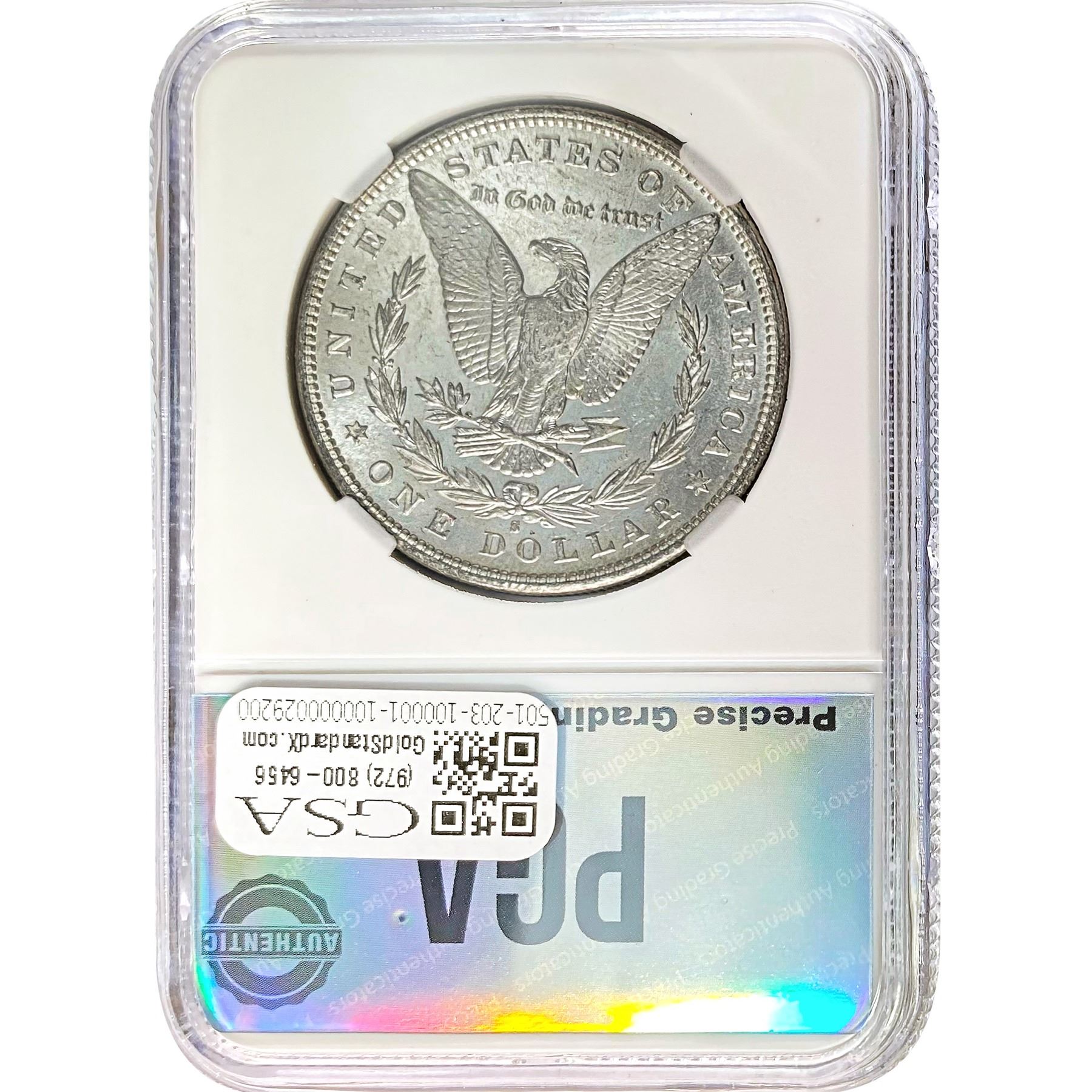 e. Coins sold referencing a third-party grading service are sold “AS IS” without any express or implied warranty, except for a guarantee by GSA that they are genuine. Removal or alteration of the holder, voids all of Bidder’s claims concerning that Product. Certain warranties may be available from the grading services and Bidders are referred to them for further details: Numismatic Guaranty Corporation (NGC), PO Box 4776, Sarasota, FL 34230, www.ngccoin.com/services/writtenguarantee.asp; Professional Coin Grading Services (PCGS), PO Box 9458, Newport Beach, CA 92658, www.pcgs.com/guarantee.html; ANACS, 6555 S. Kenton St., Ste. 303, Englewood, CO 80111; and Independent Coin Grading Co. (ICG), 7901 East Bellview, Ave., Suite 50, Englewood, CO 80111.