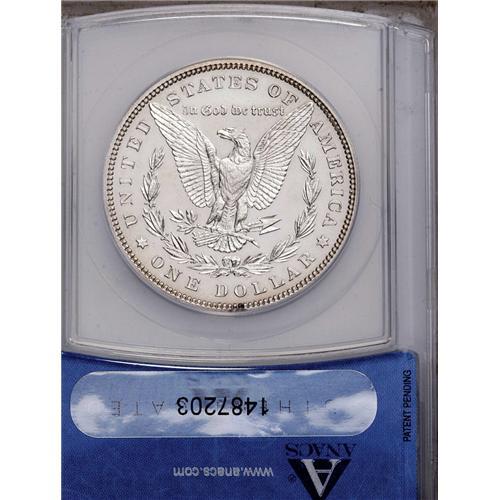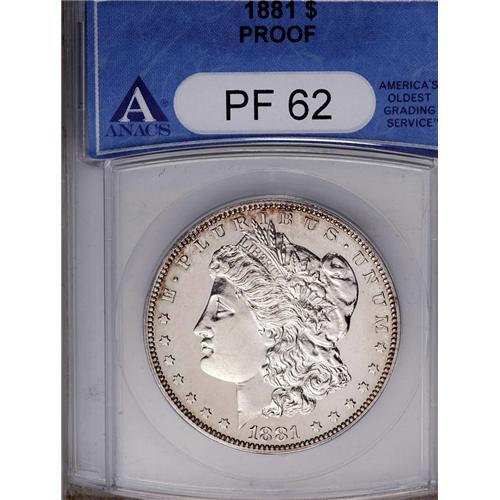 <B>1881<img border='0' src='http://www.heritagecoins.com/images/star.gif' width=10 height=10>$1> PR62 ANACS.</B></I> This boldly struck specimen is nearly brilliant, although a few light tan freckles visit the upper obverse margin. A couple of slide marks on the cheek and some wispy hairlines on the obverse field decide the grade.
