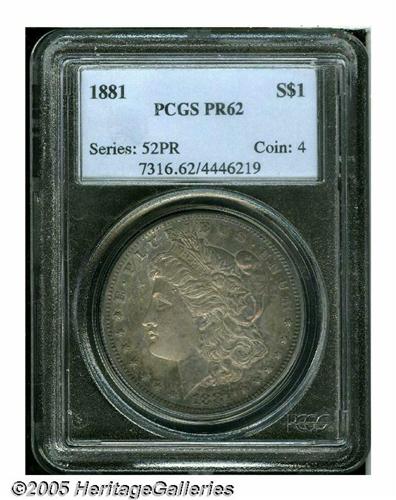 1881 S$1 PR62 PCGS. An assemblage of orange, lave