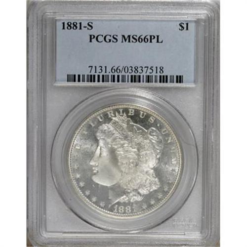 <B>1881-S $1 MS66 Prooflike PCGS.</B></I> PCGS Population (475/64). NGC Census: (480/110). Numismedia Wsl. Price for NGC/PCGS coin in MS66: $424. (#7131)<BR><BR><B>Coin Engraver:</B> George T. Morgan<BR><BR><b>Shipping:</b> Coins & Currency (<a target="_blank" href="http://www.heritageauctions.com/common/shipping.php">view shipping information</a>\)
