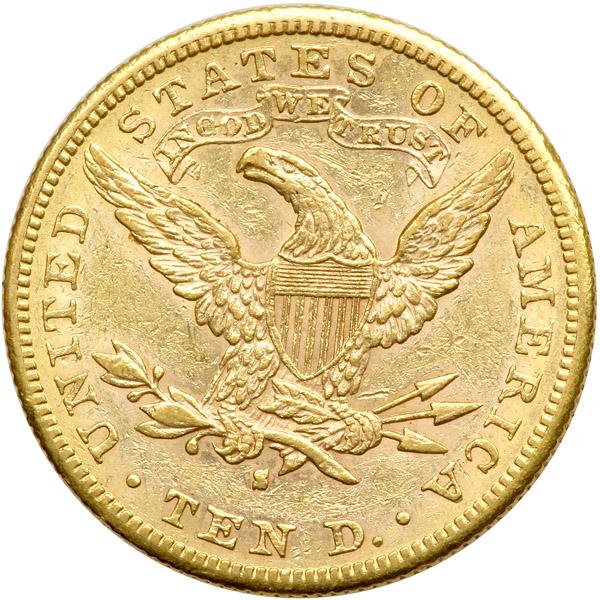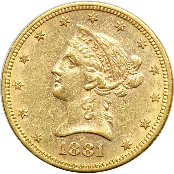 1881-S $10 Liberty. AU-50. Plenty of luster remains.