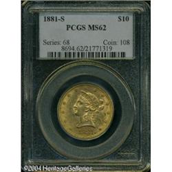 1881-S $10 MS62 PCGS. Generally well struck, with 1881-S $10 MS62 PCGS.