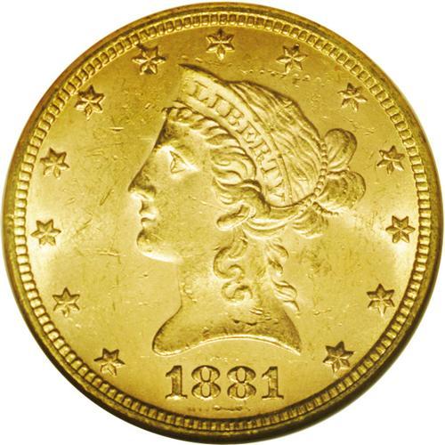 1881-S $10 MS63 NGC. Non-existent in higher grades, th 1881-S[$10] MS63 NGC.