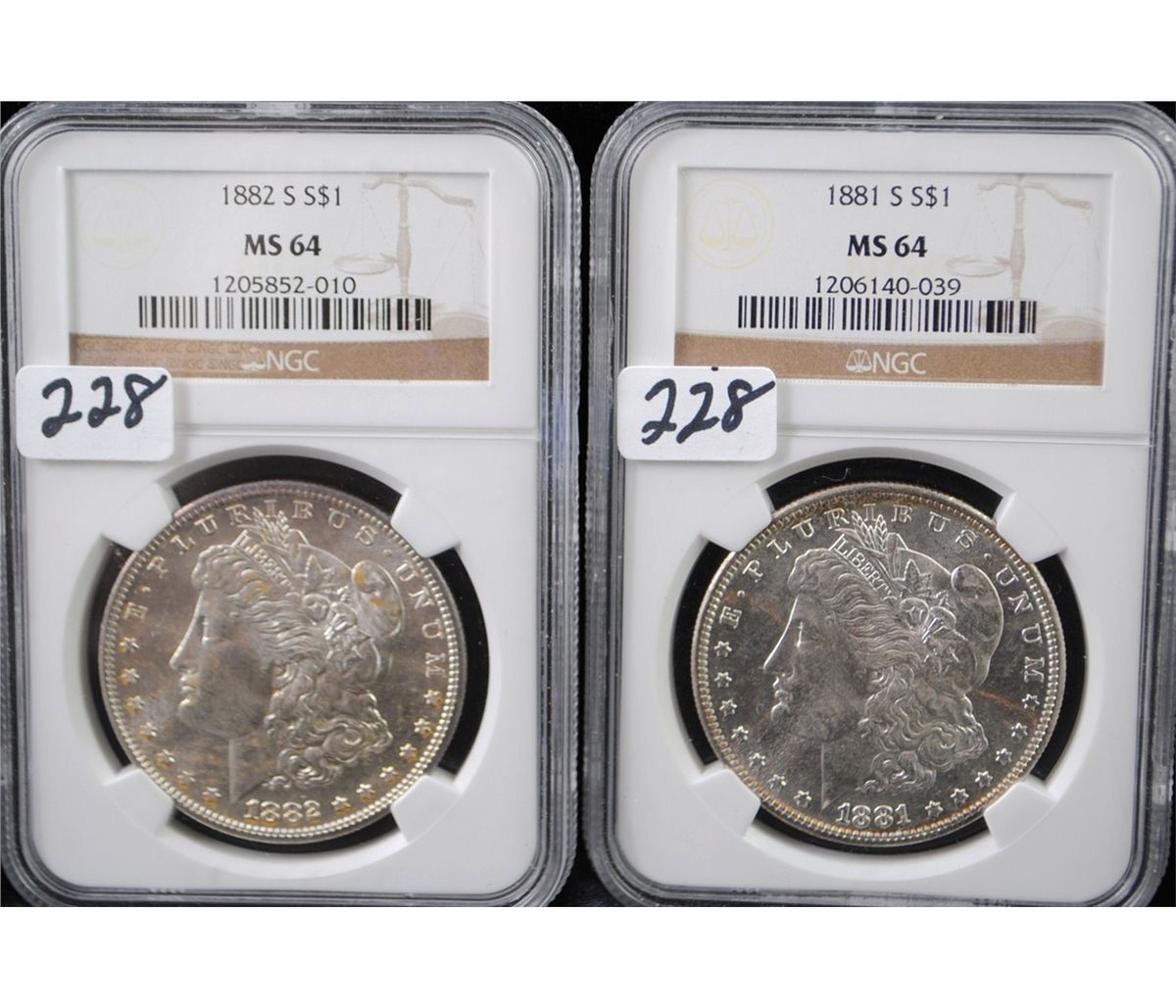 1881-S & 1882-S MORGAN DOLLARS - NGC MS64 - SOLD PER COIN TIMES 2