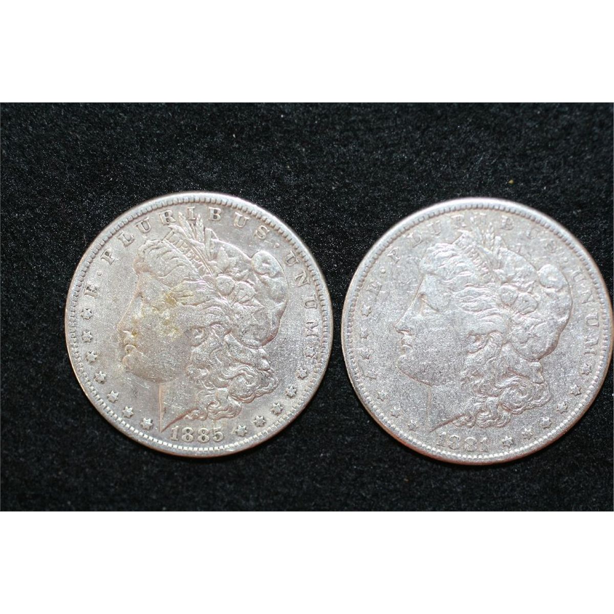 1881-S & 1885 Silver Morgan $1, lot of 2