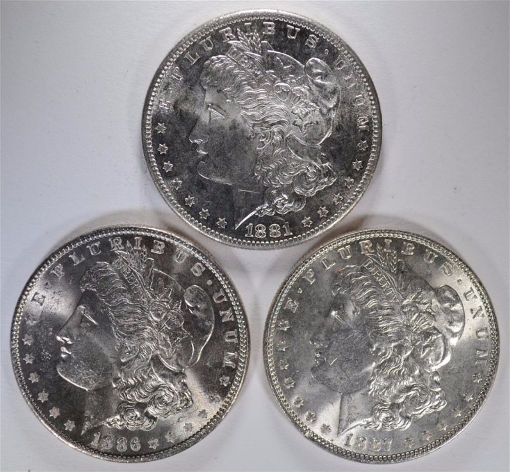 1881-S, 1886, & 1887 MORGAN DOLLARS, CH BU
