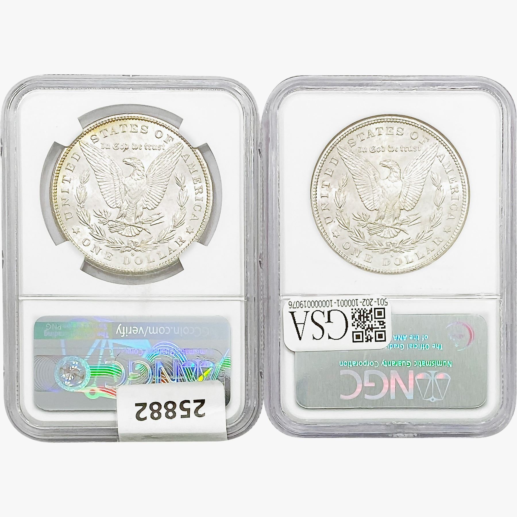 e. Coins sold referencing a third-party grading service are sold "AS IS" without any express or implied warranty, except for a guarantee by GSA that they are genuine. Removal or alteration of the holder, voids all of Bidder's claims concerning that Product. Certain warranties may be available from the grading services and Bidders are referred to them for further details: Numismatic Guaranty Corporation (NGC), PO Box 4776, Sarasota, FL 34230, www.ngccoin.com/services/writtenguarantee.asp; Professional Coin Grading Services (PCGS), PO Box 9458, Newport Beach, CA 92658, www.pcgs.com/guarantee.html; ANACS, 6555 S. Kenton St., Ste. 303, Englewood, CO 80111; and Independent Coin Grading Co. (ICG), 7901 East Bellview, Ave., Suite 50, Englewood, CO 80111.