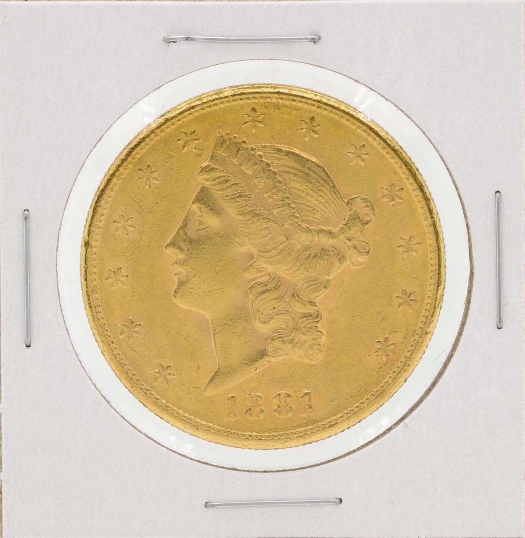 One 1881-S $20 Liberty Head Double Eagle Gold Coin.