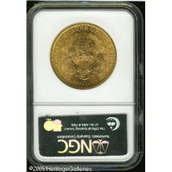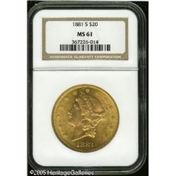 <B>1881-S $20 MS61 NGC.</B></I> This is a fully lustrous Mint State example with excellent color and surfaces. Doug Winter and Mike Fuljenz described this date as "scarce in MS61."<BR><I>From The Richard J. Chouinard Collection of United States Coins, Part Two.</B></I> Lot:9164