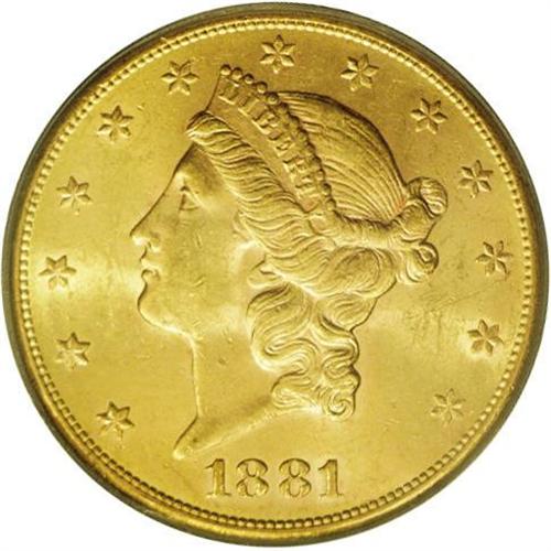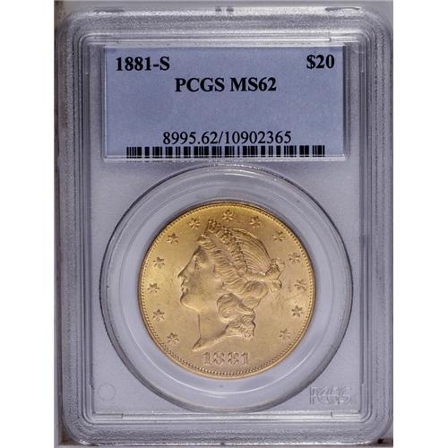 1881-S $20 MS62 PCGS. Less available than the 1880-S,