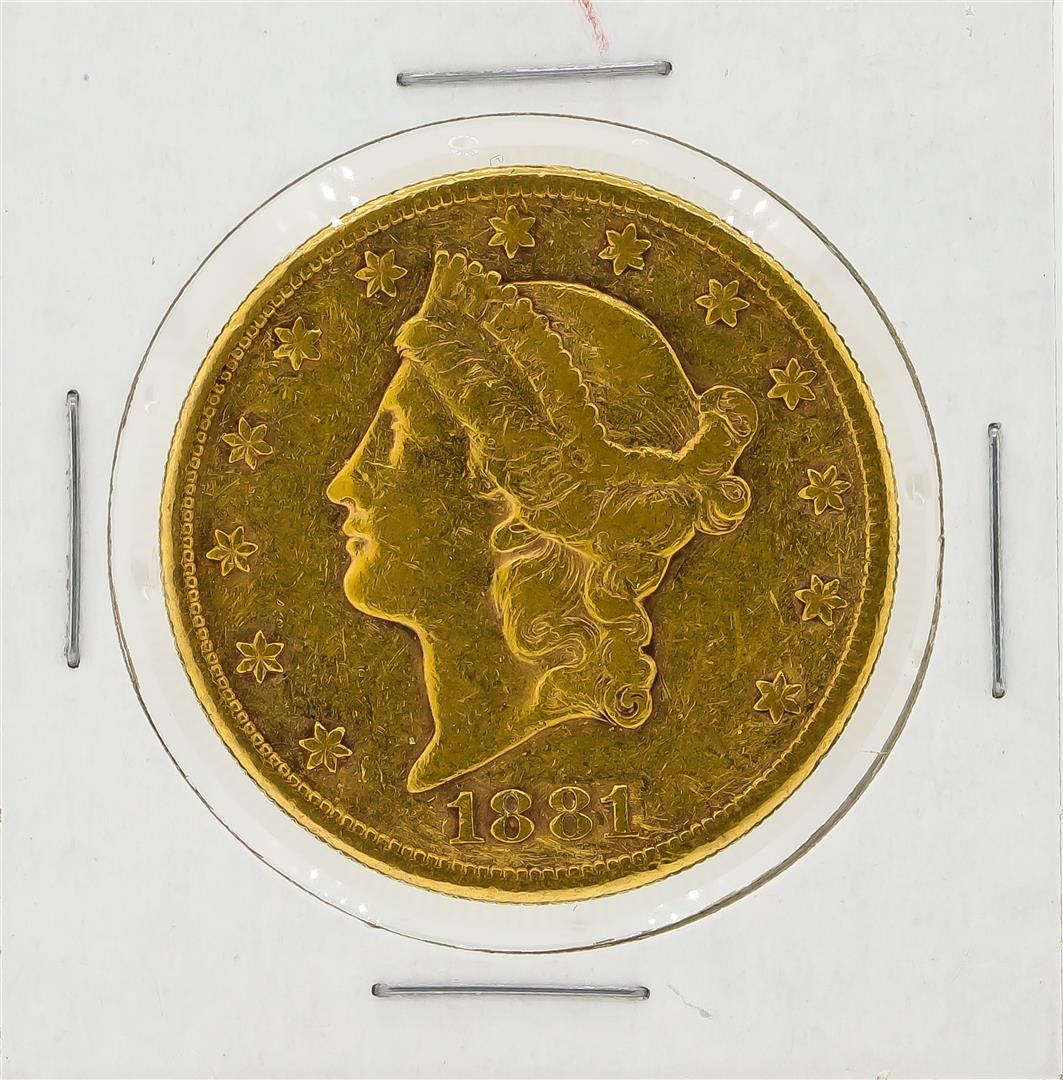 One 1881-S $20 XF Liberty Head Double Eagle Gold Coin.