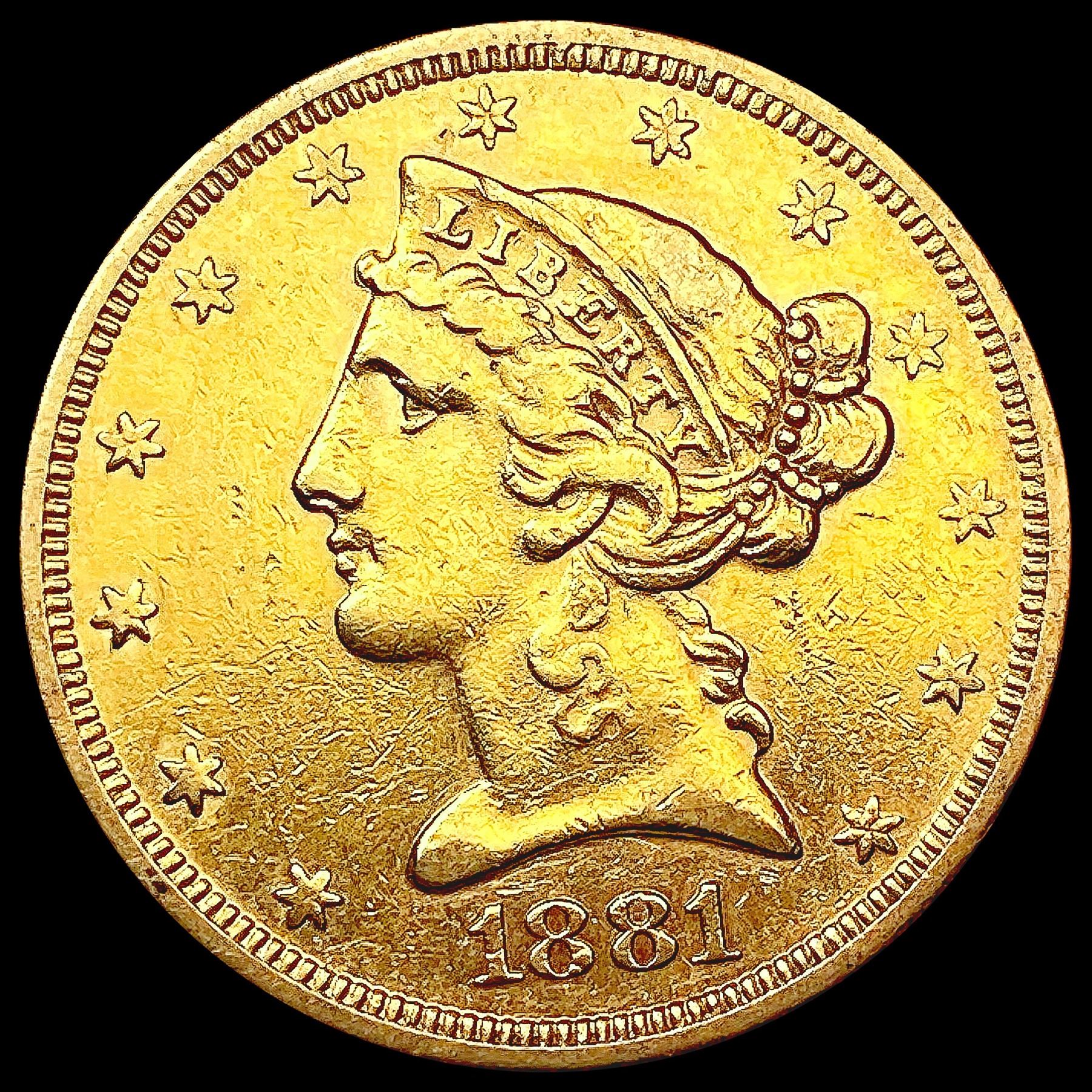 1881-S $5 Gold Half Eagle CLOSELY UNCIRCULATED