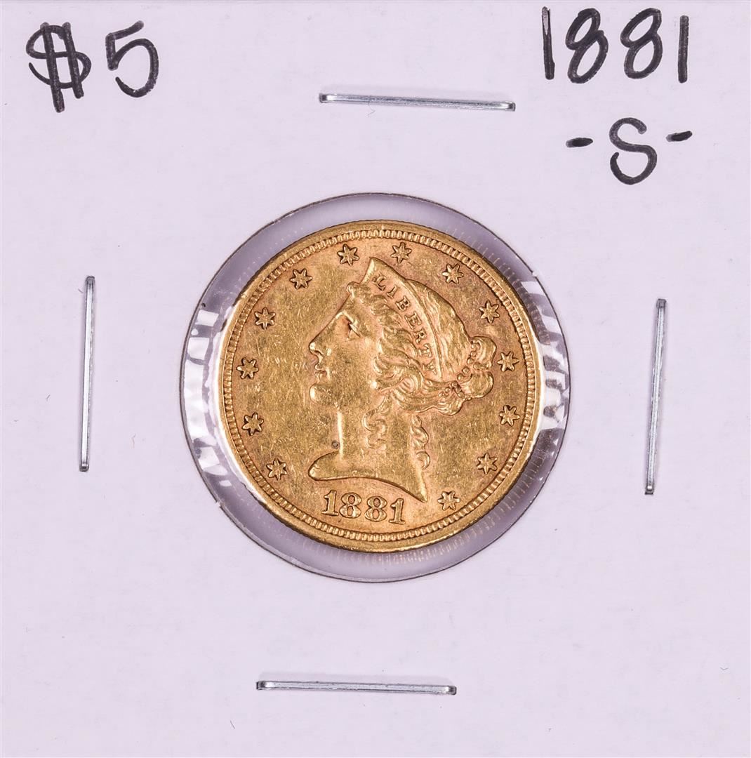 One 1881-S $5 Liberty Head Half Eagle Gold Coin.