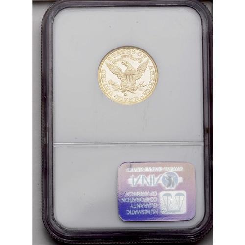 <B>1881-S<$5> MS63 NGC.</B></I> This bright straw-gold example is frosty and boldly struck, with semi-reflective fields and mild obverse scuffiness that limits the grade. An attractive and rather flashy Mint State representative of this San Francisco issue, which becomes very scarce any finer.