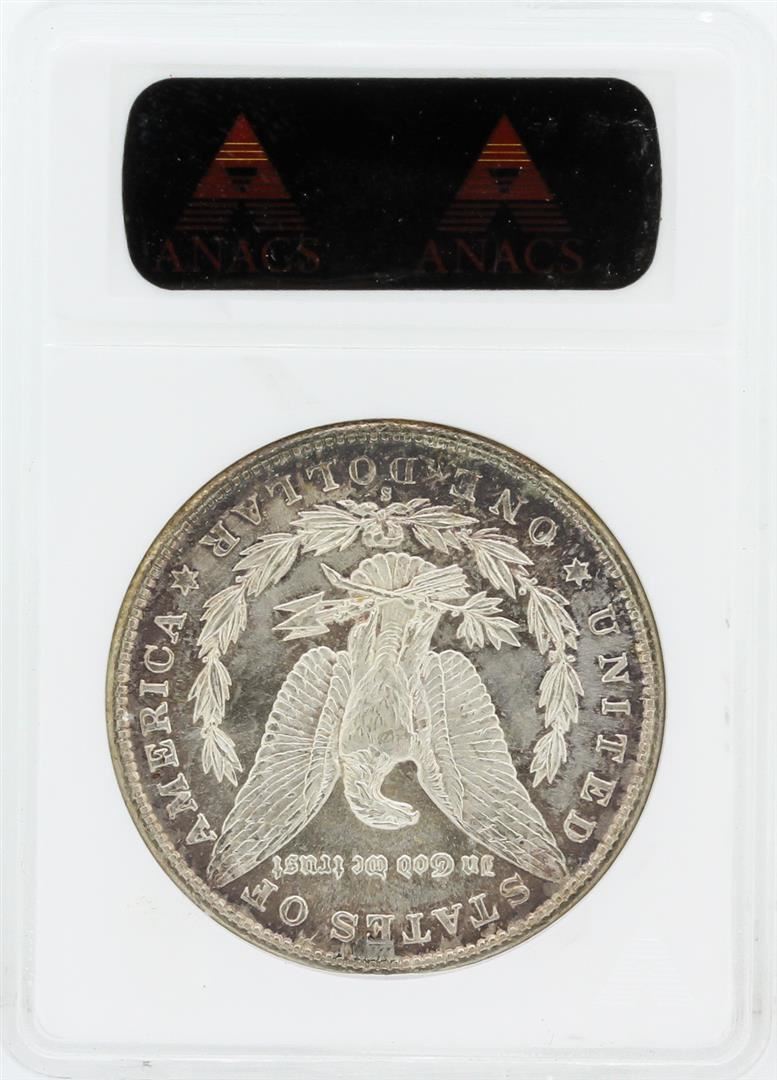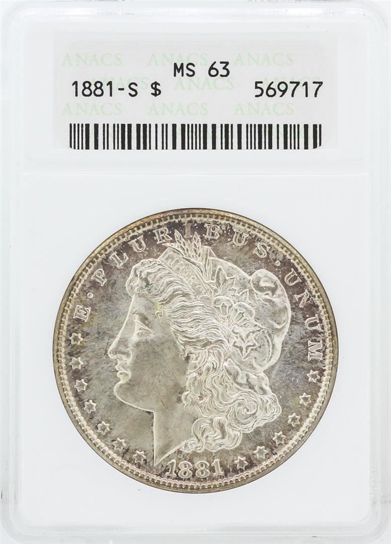 One 1881-S ANACS MS63 Morgan Silver Dollar. ANACS Appraised.