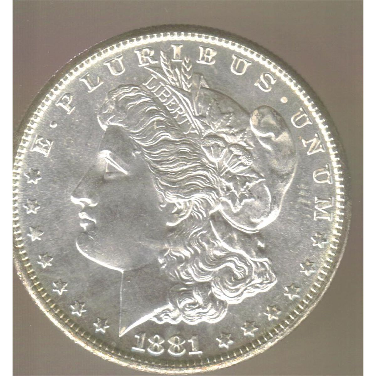 1881-S " DEEP MIRROR PROOF LIKE " CHOICE / BRIGHT UNCIRCULATED HIGH GRADE MORGAN SILVER DOLLAR WITH VAM-1A ( DATE- spike in 8's, STARS- right & left doubled, EAR & letters of LIBERTY doubled, top 2 left wreath clusters trippled, AND doubled olive, & small "s" mint mark