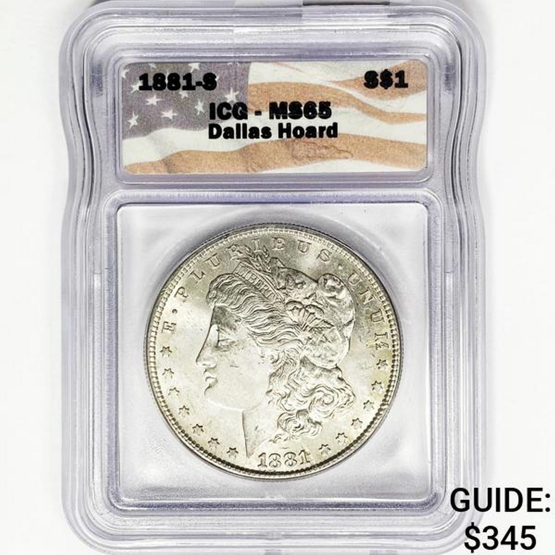 1881-S Dallas Hoard Morgan Silver Dollar ICG MS65