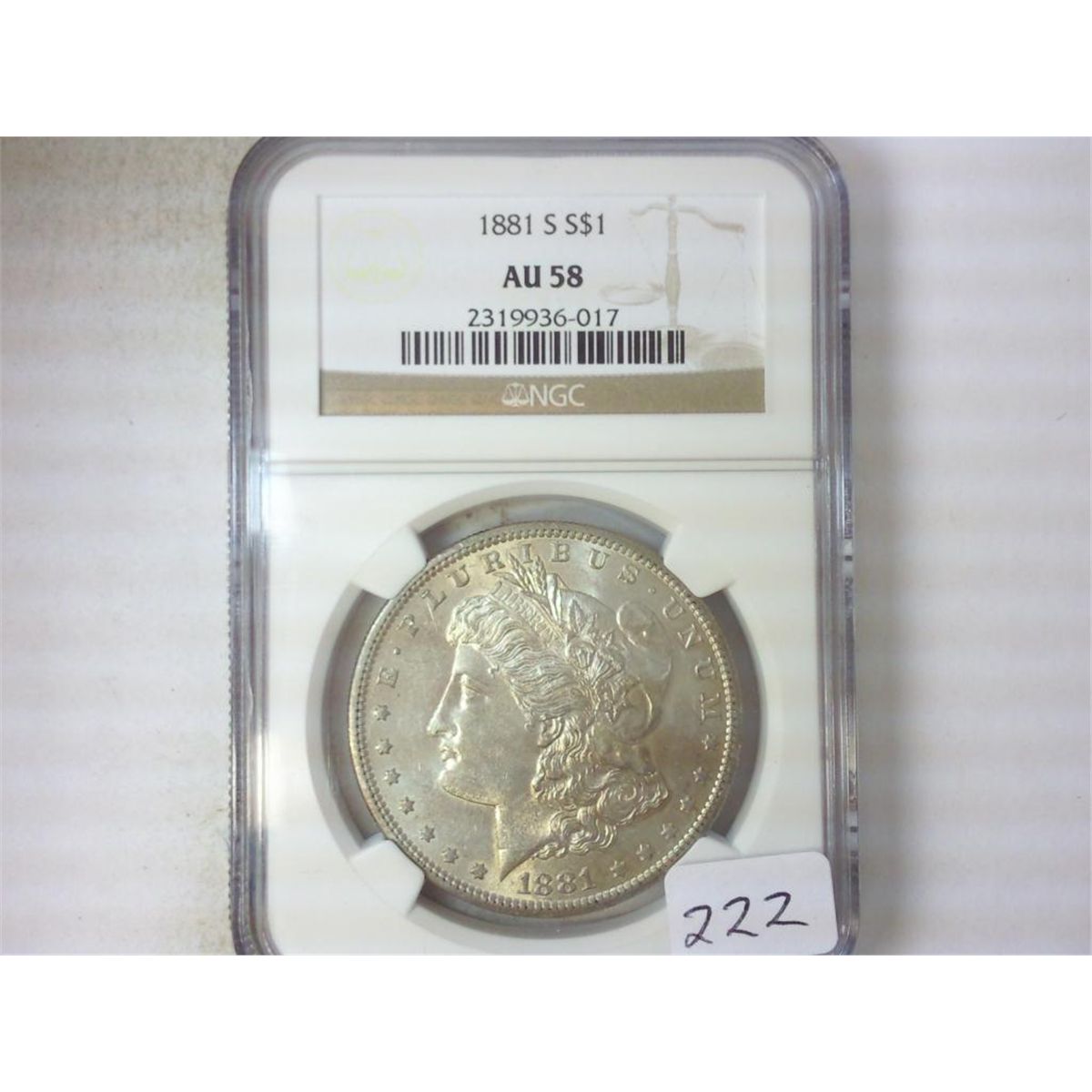 1881-S MORGAN SILVER DOLLAR NGC AU58