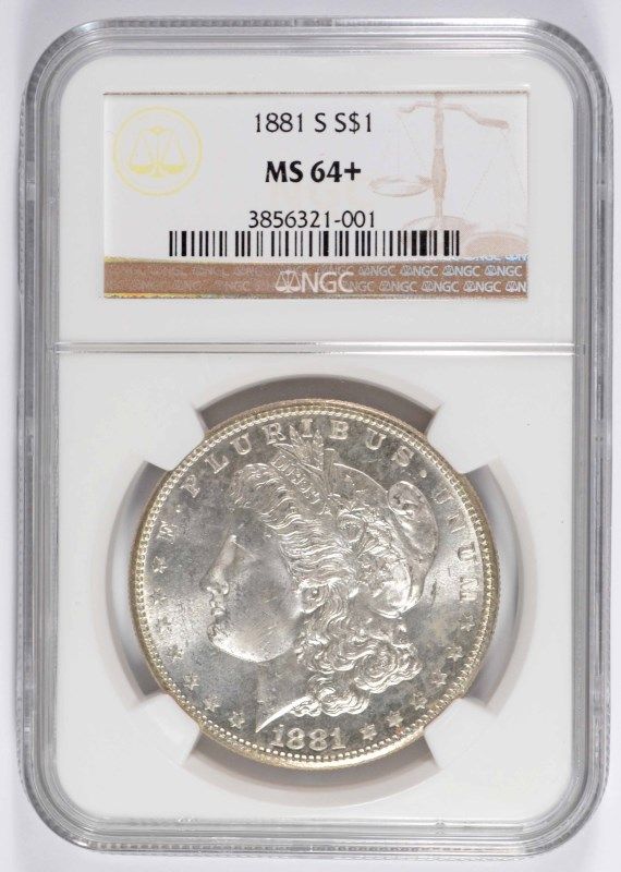 1881-S MORGAN SILVER DOLLAR, NGC MS-64+ BLAST WHITE!!