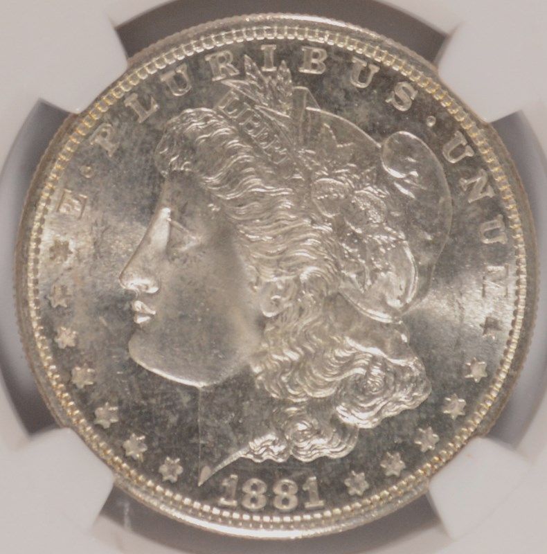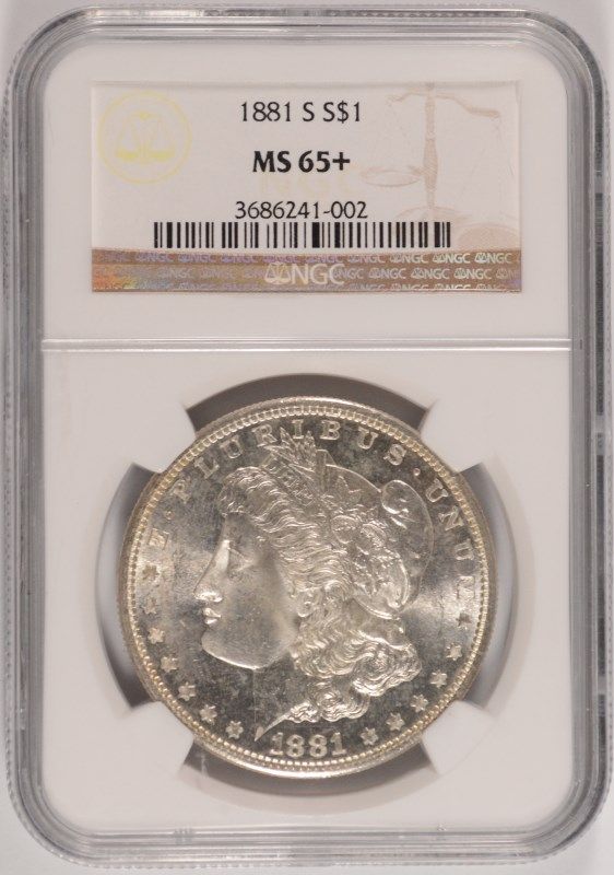 1881-S MORGAN SILVER DOLLAR, NGC MS-65+ BLAST WHITE!