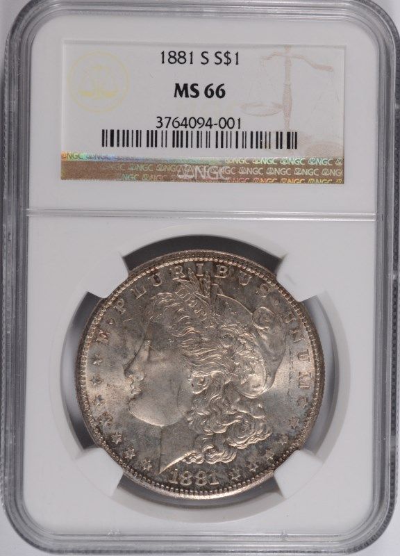 1881-S MORGAN SILVER DOLLAR, NGC MS-66 SUPERB COIN!!!