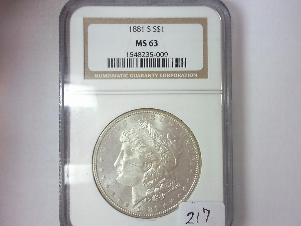 1881-S MORGAN SILVER DOLLAR NGC MS63