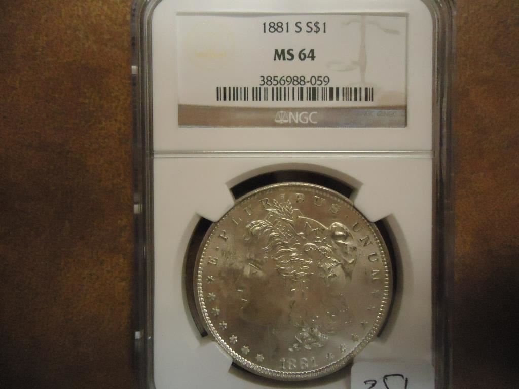 1881-S MORGAN SILVER DOLLAR NGC MS64
