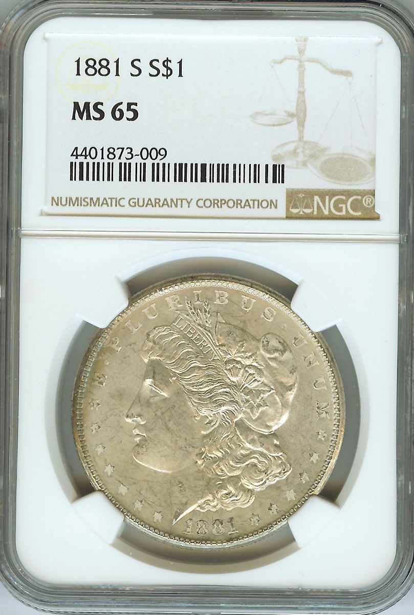 1881-S MORGAN SILVER DOLLAR NGC MS65