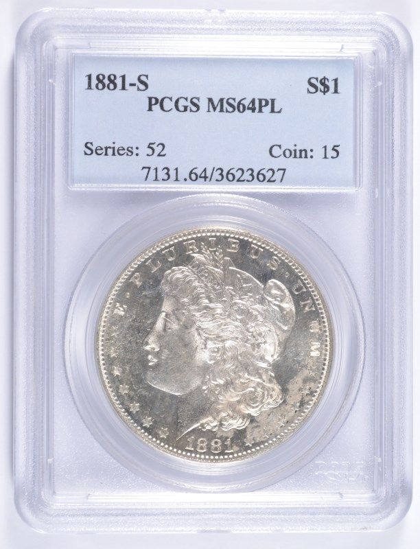 1881-S MORGAN SILVER DOLLAR, PCGS MS-64 PL VERY NICE
