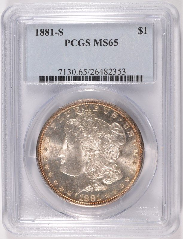 1881-S MORGAN SILVER DOLLAR, PCGS MS-65 GEM!