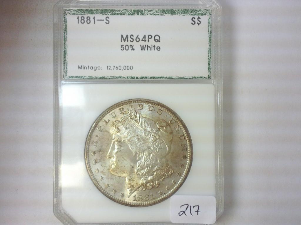 1881-S MORGAN SILVER DOLLAR PCI MS64PQ 50% WHITE