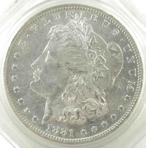 A NICE SILVER DOLLAR FOR YOUR COLLECTION, ESTIMATE, $55.00 TO $60.00 Silvertowne is rated as a top auction company on Proxiblog because of its expert grading of coins and currency