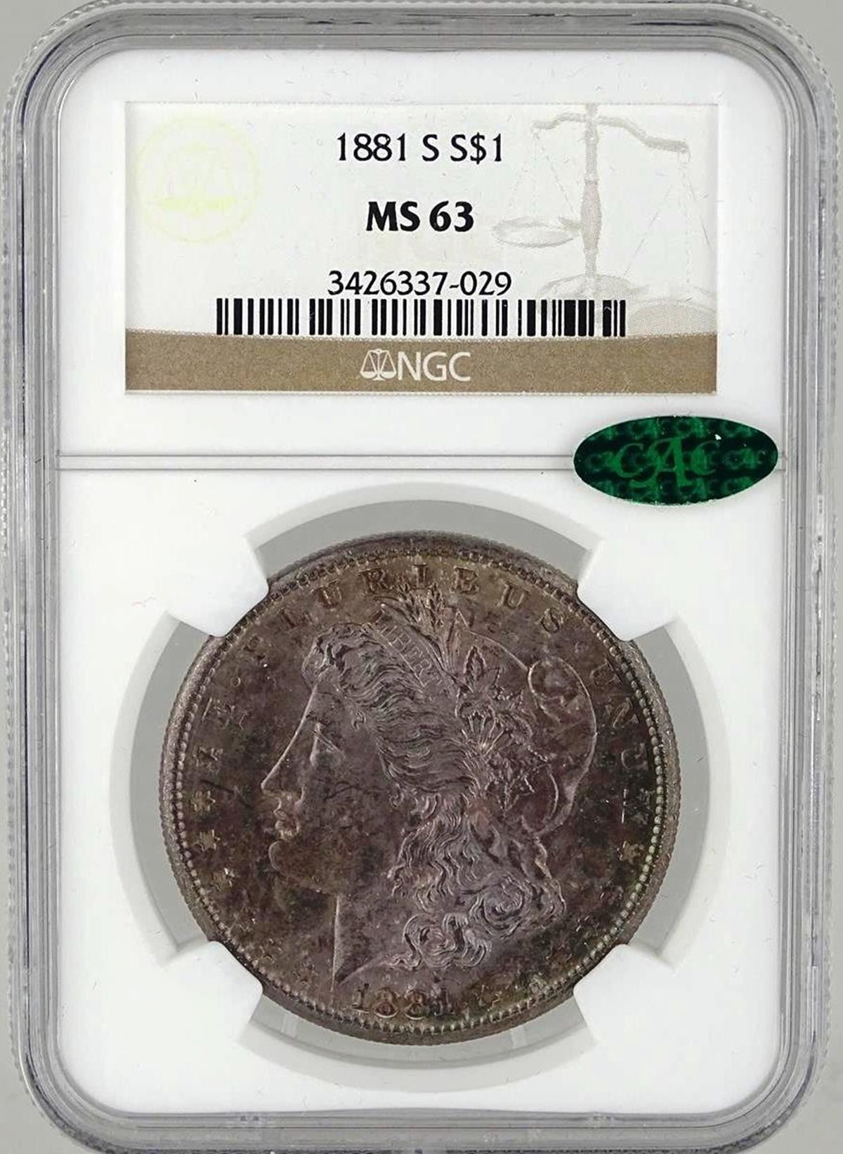 VIOLET-BLUE TONED OBVERSE. MS63 BY NGC, CAC