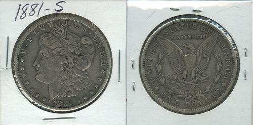1881 S MORGAN SILVER DOLLAR.