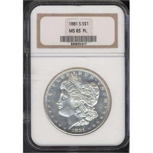 <b>1881-S Morgan Dollar. NGC graded MS65 PL.</b> Originally preserved, the surfaces are intensely lustrous with swirling mirror fresh cartwheel glow <b>(PCGS # 7131)</b>