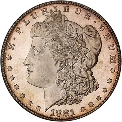 Fully struck on each side, the brilliant surfaces have a sheet of silvery luster that shimmers and sparkles and is uninterrupted by any noticeable abrasions. Natural purple-gray toning has formed around the outer border. (#97131)