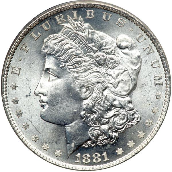 1881-S Morgan Dollar. PCGS graded MS-65 PQ. Housed in an Old Green Holder. A nice white coin (PCGS # 7130) .