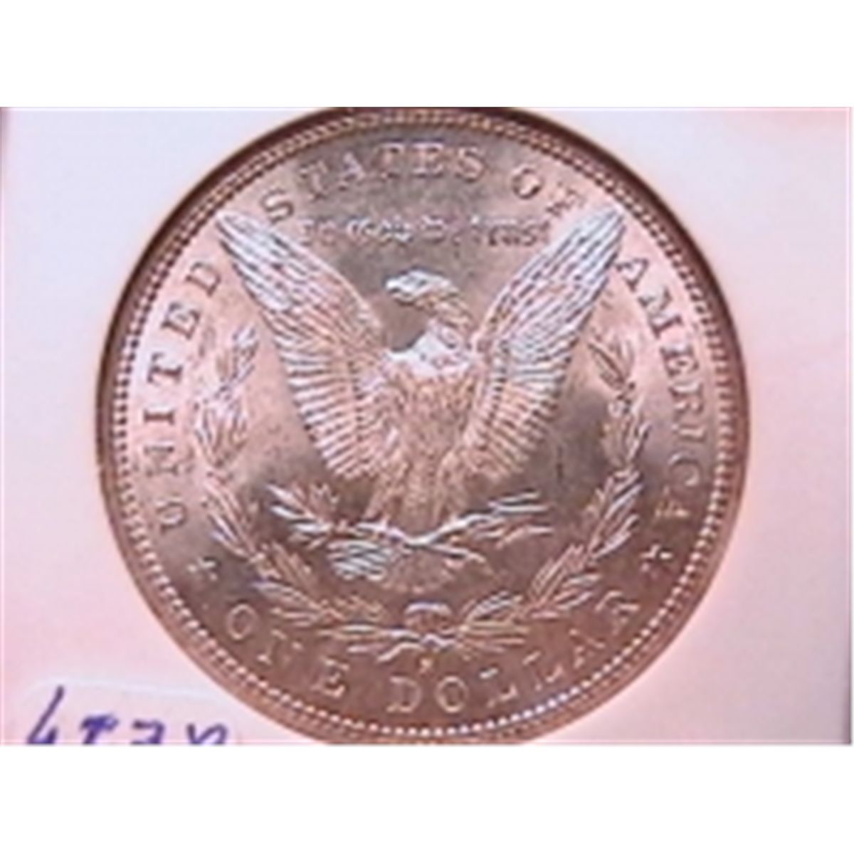 Superb mark free coin that is white on the reverse. The obv. shows glossy gray with iridescent turquoise in the fields!