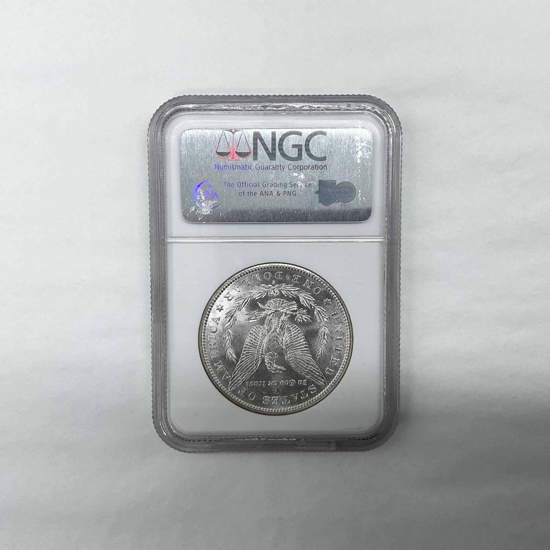 San Francisco Mint. The obverse side features Liberty in profile. She is shown in cap, flora, and crown. The reverse side depicts an eagle with outstretched wings gripping arrows and an olive branch. The coin is in a protective case. The case is approximately: 2.5"L x 0.5"W x 3.5"H.