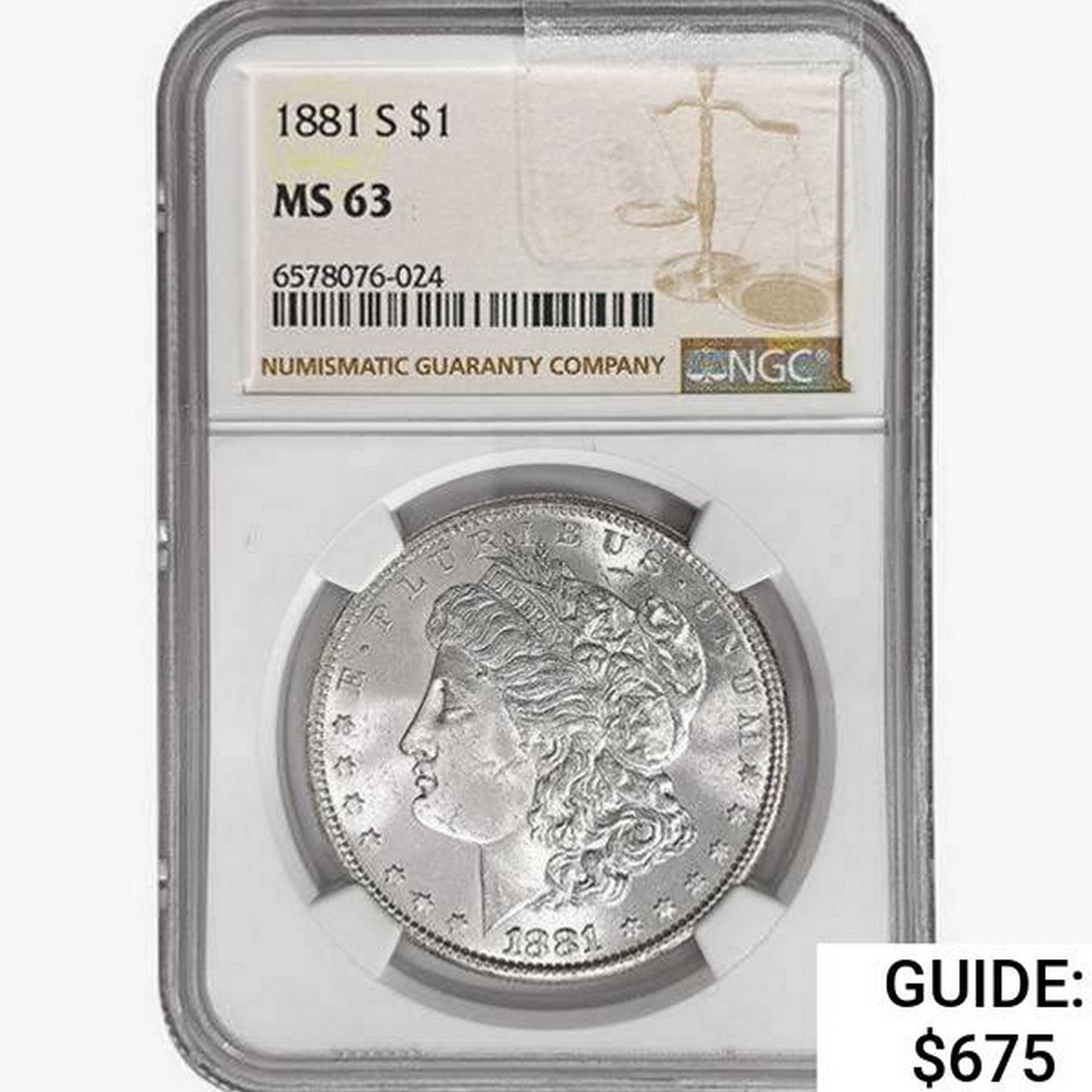 1881-S Morgan Silver Dollar NGC MS63