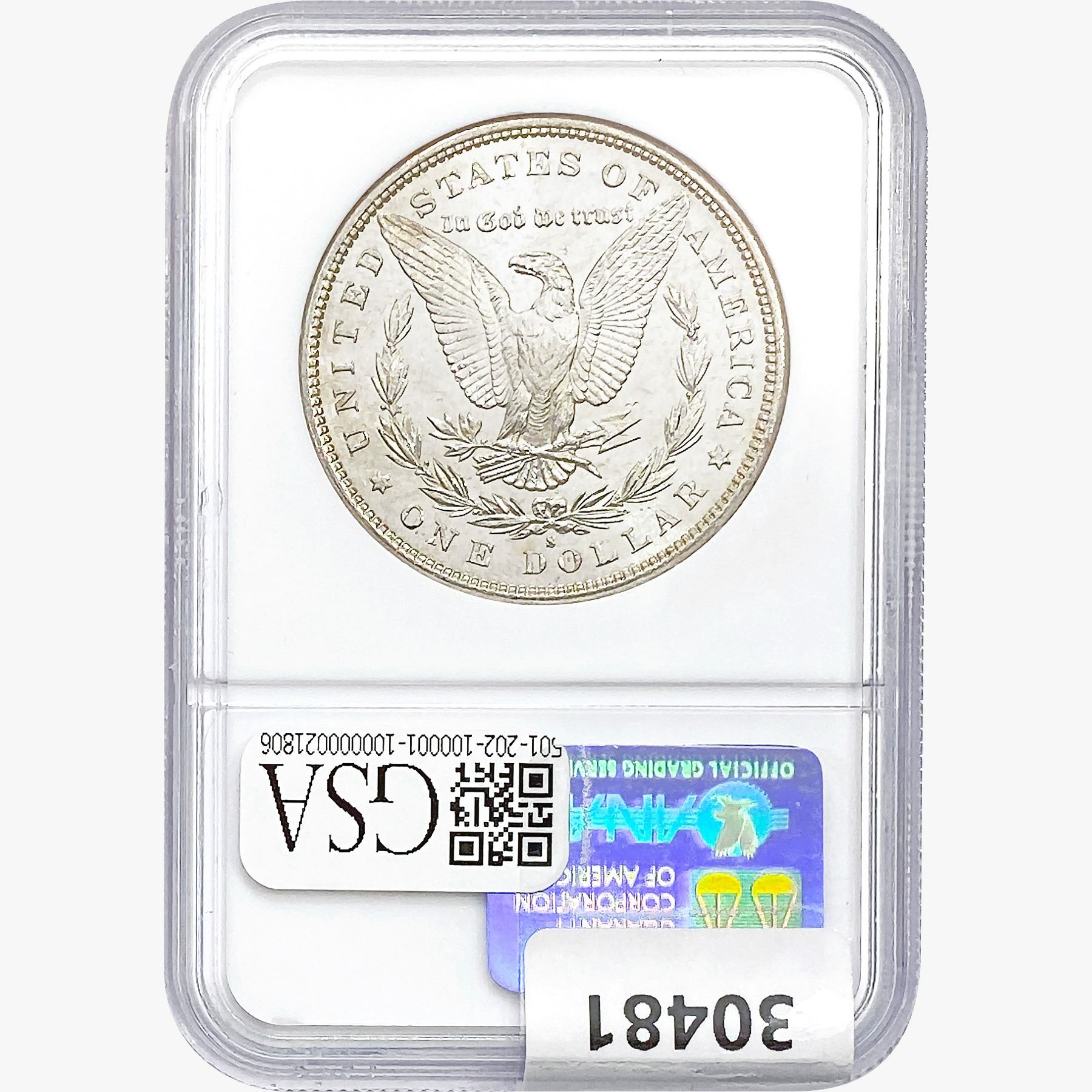 e. Coins sold referencing a third-party grading service are sold “AS IS” without any express or implied warranty, except for a guarantee by GSA that they are genuine. Removal or alteration of the holder, voids all of Bidder’s claims concerning that Product. Certain warranties may be available from the grading services and Bidders are referred to them for further details: Numismatic Guaranty Corporation (NGC), PO Box 4776, Sarasota, FL 34230, www.ngccoin.com/services/writtenguarantee.asp; Professional Coin Grading Services (PCGS), PO Box 9458, Newport Beach, CA 92658, www.pcgs.com/guarantee.html; ANACS, 6555 S. Kenton St., Ste. 303, Englewood, CO 80111; and Independent Coin Grading Co. (ICG), 7901 East Bellview, Ave., Suite 50, Englewood, CO 80111.