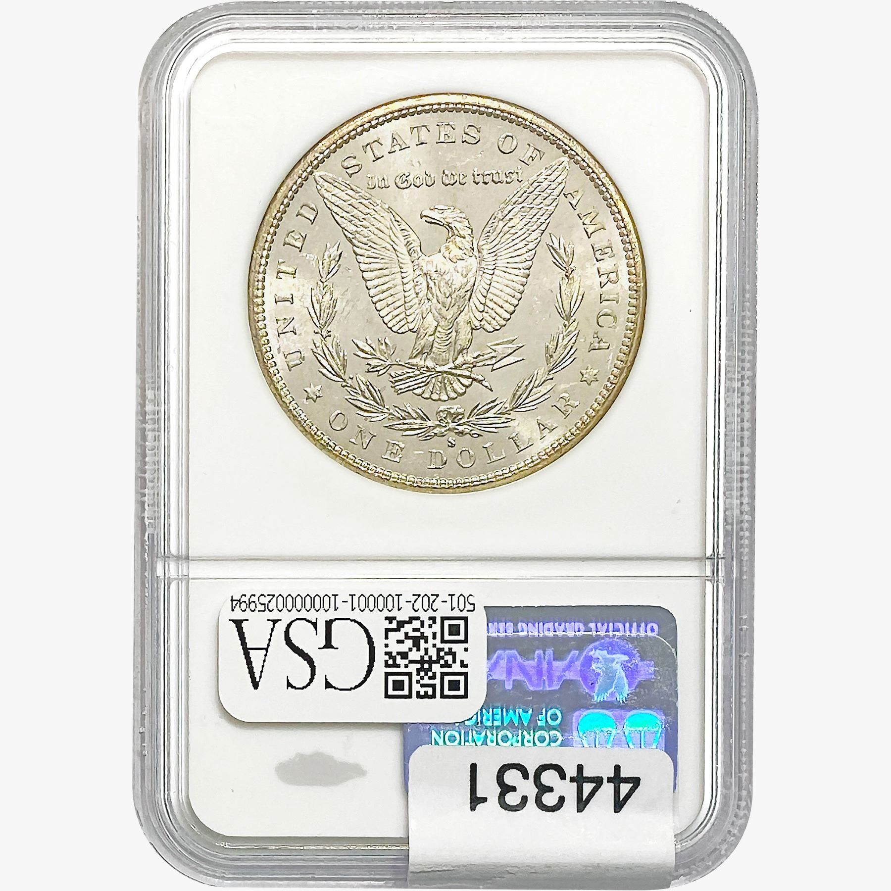 COINS AND CURRENCY LISTED IN GSA’S CATALOG AS GRADED AND ENCAPSULATED BY PCGS, NGC, ANACS, ICG, PCGS CURRENCY, PMG, PCGS BANKNOTE GRADING, CMC OR ANY OTHER THIRD-PARTY GRADING SERVICE ARE LIKEWISE SOLD “AS-IS” EXCEPT AS EXPRESSLY SET FORTH HEREIN. ALL THIRD-PARTY GRADING SERVICE GUARANTEES, INCLUDING AUTHENTICITY, ARE THE SOLE RESPONSIBILITY OF THE THIRD-PARTY GRADING SERVICE AND NOT WARRANTIES OR GUARANTEES OF GSA. BIDDERS SHOULD CONTACT THESE THIRD-PARTY GRADING SERVICES DIRECTLY WITH RESPECT TO ANY CLAIMS OR QUESTIONS THEY MAY HAVE CONCERNING THEIR GUARANTEES AND WARRANTIES. BIDDERS ACKNOWLEDGE AND AGREE THAT AUCTIONEER IS NOT BOUND BY OR LIABLE FOR ANY OPINION OR CERTIFICATION BY ANY THIRD-PARTY GRADING SERVICE. REMOVAL OF A PRODUCT FROM ITS PROTECTIVE CASING OR HOLDER OR ALTERATION OF ANY COIN HOLDER WAIVES ALL RIGHTS CONCERNING THE PRODUCT CONTAINED THEREIN.