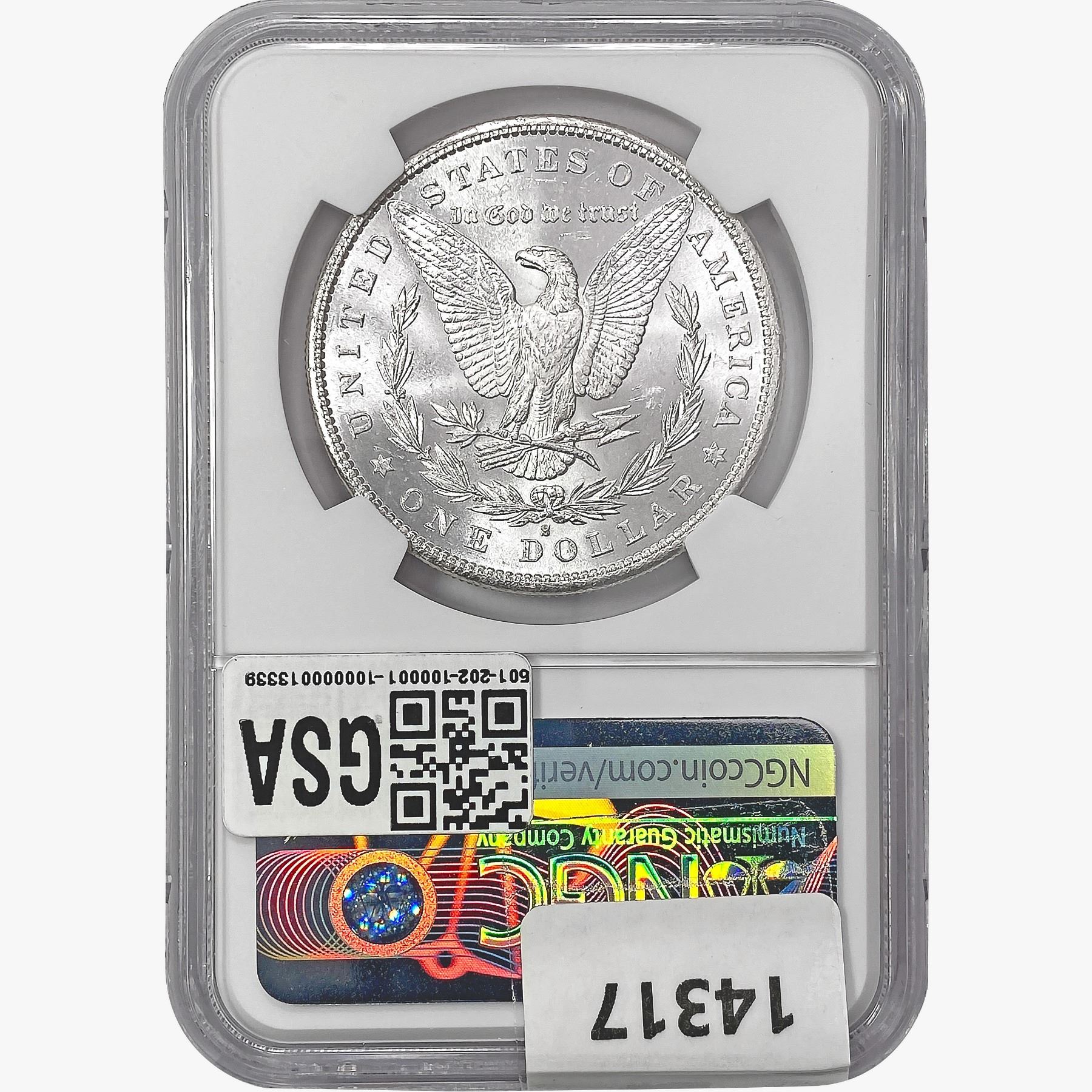e. Coins sold referencing a third-party grading service are sold “AS IS” without any express or implied warranty, except for a guarantee by GSA that they are genuine. Removal or alteration of the holder, voids all of Bidder’s claims concerning that Product. Certain warranties may be available from the grading services and Bidders are referred to them for further details: Numismatic Guaranty Corporation (NGC), PO Box 4776, Sarasota, FL 34230, www.ngccoin.com/services/writtenguarantee.asp; Professional Coin Grading Services (PCGS), PO Box 9458, Newport Beach, CA 92658, www.pcgs.com/guarantee.html; ANACS, 6555 S. Kenton St., Ste. 303, Englewood, CO 80111; and Independent Coin Grading Co. (ICG), 7901 East Bellview, Ave., Suite 50, Englewood, CO 80111.