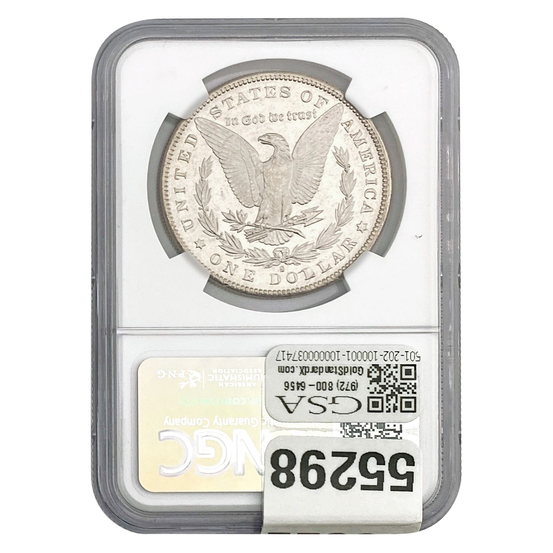 e. Coins sold referencing a third-party grading service are sold “AS IS” without any express or implied warranty, except for a guarantee by GSA that they are genuine. Removal or alteration of the holder, voids all of Bidder’s claims concerning that Product. Certain warranties may be available from the grading services and Bidders are referred to them for further details: Numismatic Guaranty Corporation (NGC), PO Box 4776, Sarasota, FL 34230, www.ngccoin.com/services/writtenguarantee.asp; Professional Coin Grading Services (PCGS), PO Box 9458, Newport Beach, CA 92658, www.pcgs.com/guarantee.html; ANACS, 6555 S. Kenton St., Ste. 303, Englewood, CO 80111; and Independent Coin Grading Co. (ICG), 7901 East Bellview, Ave., Suite 50, Englewood, CO 80111.