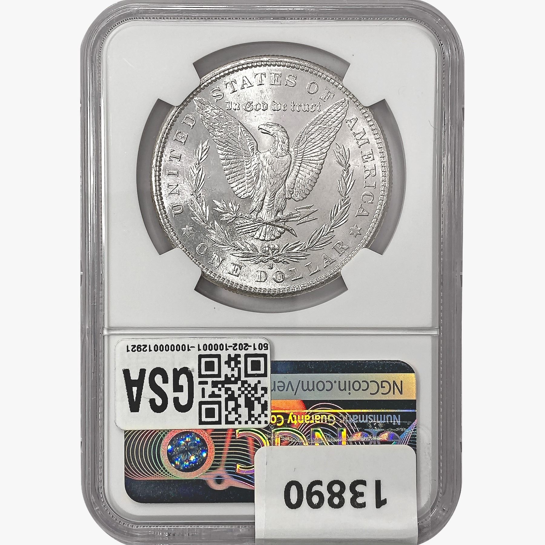 e. Coins sold referencing a third-party grading service are sold "AS IS" without any express or implied warranty, except for a guarantee by GSA that they are genuine. Removal or alteration of the holder, voids all of Bidder's claims concerning that Product. Certain warranties may be available from the grading services and Bidders are referred to them for further details: Numismatic Guaranty Corporation (NGC), PO Box 4776, Sarasota, FL 34230, www.ngccoin.com/services/writtenguarantee.asp; Professional Coin Grading Services (PCGS), PO Box 9458, Newport Beach, CA 92658, www.pcgs.com/guarantee.html; ANACS, 6555 S. Kenton St., Ste. 303, Englewood, CO 80111; and Independent Coin Grading Co. (ICG), 7901 East Bellview, Ave., Suite 50, Englewood, CO 80111.