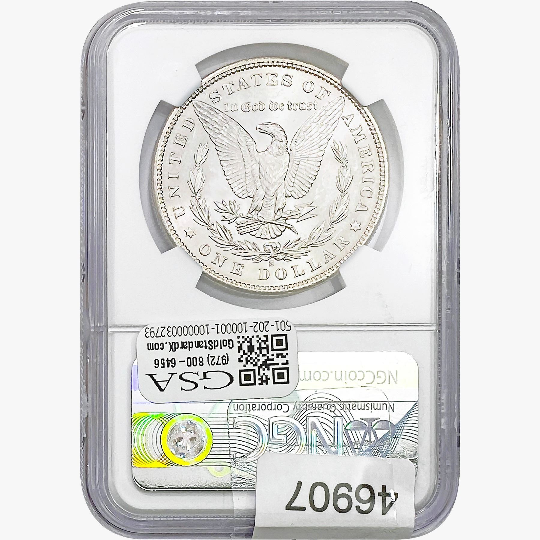 e. Coins sold referencing a third-party grading service are sold “AS IS” without any express or implied warranty, except for a guarantee by GSA that they are genuine. Removal or alteration of the holder, voids all of Bidder’s claims concerning that Product. Certain warranties may be available from the grading services and Bidders are referred to them for further details: Numismatic Guaranty Corporation (NGC), PO Box 4776, Sarasota, FL 34230, www.ngccoin.com/services/writtenguarantee.asp; Professional Coin Grading Services (PCGS), PO Box 9458, Newport Beach, CA 92658, www.pcgs.com/guarantee.html; ANACS, 6555 S. Kenton St., Ste. 303, Englewood, CO 80111; and Independent Coin Grading Co. (ICG), 7901 East Bellview, Ave., Suite 50, Englewood, CO 80111.