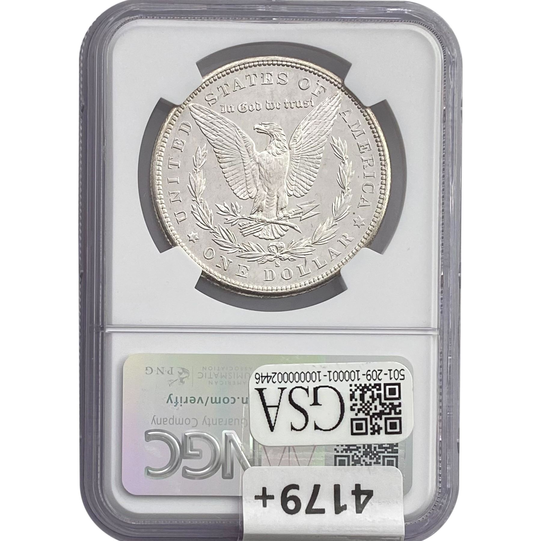 e. Coins sold referencing a third-party grading service are sold “AS IS” without any express or implied warranty, except for a guarantee by GSA that they are genuine. Removal or alteration of the holder, voids all of Bidder’s claims concerning that Product. Certain warranties may be available from the grading services and Bidders are referred to them for further details: Numismatic Guaranty Corporation (NGC), PO Box 4776, Sarasota, FL 34230, www.ngccoin.com/services/writtenguarantee.asp; Professional Coin Grading Services (PCGS), PO Box 9458, Newport Beach, CA 92658, www.pcgs.com/guarantee.html; ANACS, 6555 S. Kenton St., Ste. 303, Englewood, CO 80111; and Independent Coin Grading Co. (ICG), 7901 East Bellview, Ave., Suite 50, Englewood, CO 80111.