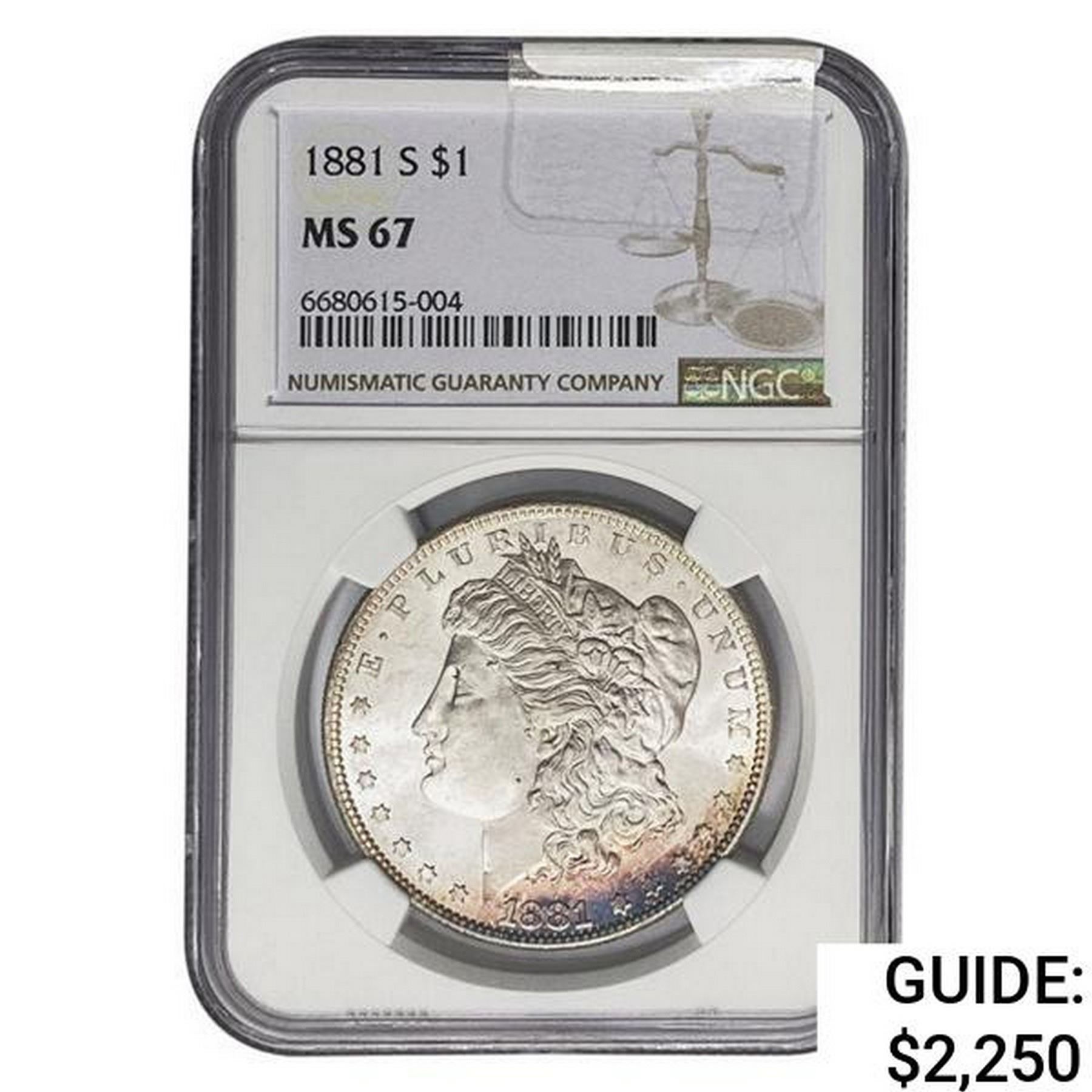 1881-S Morgan Silver Dollar NGC MS67